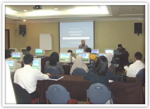 Pelatihan Data Elektonik Laporan Keuangan Dana Pensiun. Program (acara) yang diselenggarakan oleh BAPEPAM & LK Depkeu ini, berlangsung di hotel Sheraton Bandung, dengan rental Komputer sebanyak 30 unit. Dibagi dalam 2 kelas (2 ruangan), masing-masing kelas untuk 15 peserta. Dalam 1 hari dibagi menjadi 2 shif (pagi dan siang), dilaksanakan selama 2 hari, jadi total keseluruhan peserta dalam acara ini sekitar 120 orang. Peserta dari program ini datang dari seluruh wilayah Indonesia, yang terdiri dari instansi swasta, pemerintah dan BUMN. |