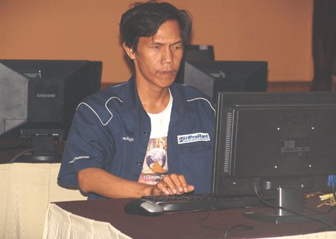 Setelah ke 60 unit PC terpasang, para teknisi RH ProRent melakukan tahap seting jaringan (network) pada setiap PC, sampai seluruh PC tersebut tersambung ke jaringan. |