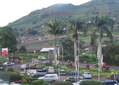 Suasana halaman parkir depan hotel Putri Gunung Cottage, di jalan Raya Tangkuban Perahu Lembang - Bandung, tempat berlangsungnya pelatihan Bank Bumiputera. Foto diambil dari lantai 2 hotel Putri Gunung Cottage. Tampak pada gambar, latar belakang Gunung menambah indahnya pemandangan.